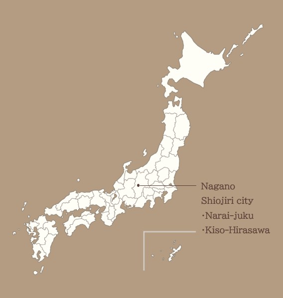 Located in the Kiso Valley of Shinshu, Kiso-Hirasawa is a rare center of Kiso lacquerware where workshops, wholesalers, lacquer refining facilities, and restoration studios are scattered throughout the town. Urushi craftsmanship is deeply woven into everyday life, and it is the artisans and local residents themselves who shape the town’s distinctive landscape.