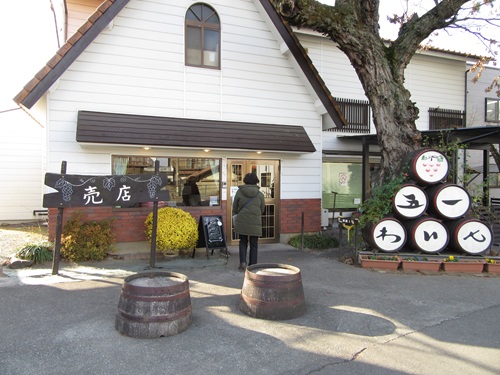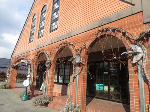 道路を挟んだ向かい側に井筒ワインはあります。井筒ワインの外観 レンガ調で素敵です。